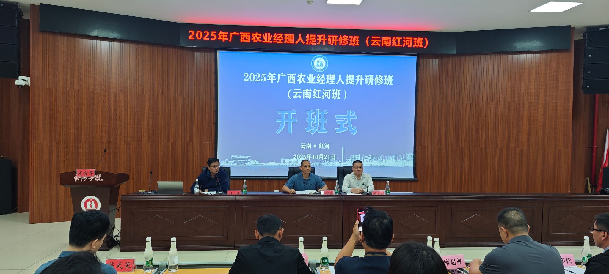 在自治区农业农村厅的支持下,由南宁师范大学承办的2025年广西农业经理人提升研修班(云南红河班)于2025年10月20日-25日在红河学院顺利举办,培训6天。红河学院继续教育学院李晓强院长、副院长骆洪军,我校继续教育学院院长徐健、副院长周日南共同牵头培训教学工作,来自全区81名农业经理人学员参加了培训。