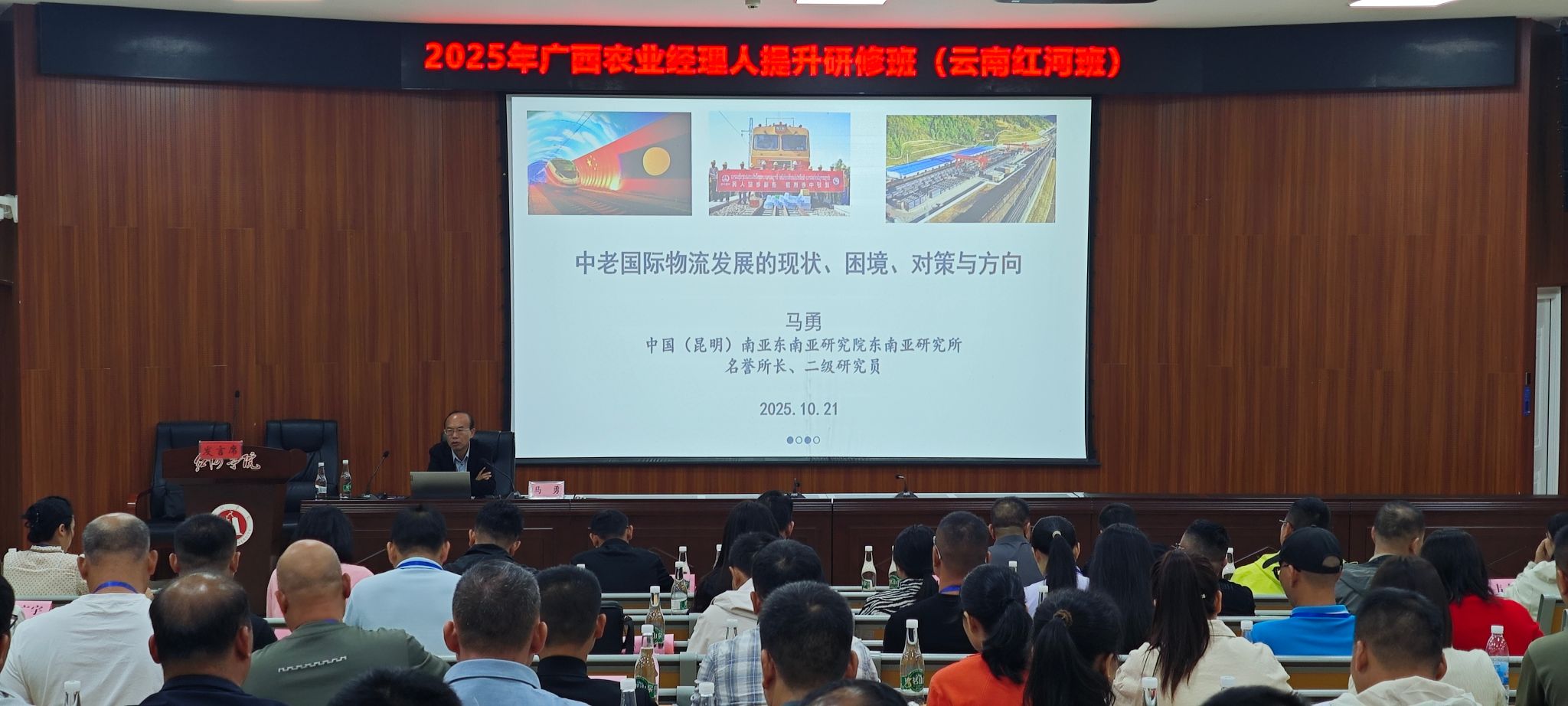 为提升培训实效,精准对接学员需求,本次研修班采用“理论教学+现场教学”形式,精心设计培训内容。特邀云南省社会科学院、中国(昆明)南亚东南亚研究院二级研究员马勇,以“中老国际物流的发展现状、困境、对策与方向” 为主题作专题授课,深入剖析跨境物流与农业产业融合发展的路径;红河州农业科学院院长、农业技术推广研究员李勇成围绕“云南农业技术推广实践与经验”,分享农业技术落地转化的典型案例与实用方法,为学员搭建理论与实践的衔接桥梁。