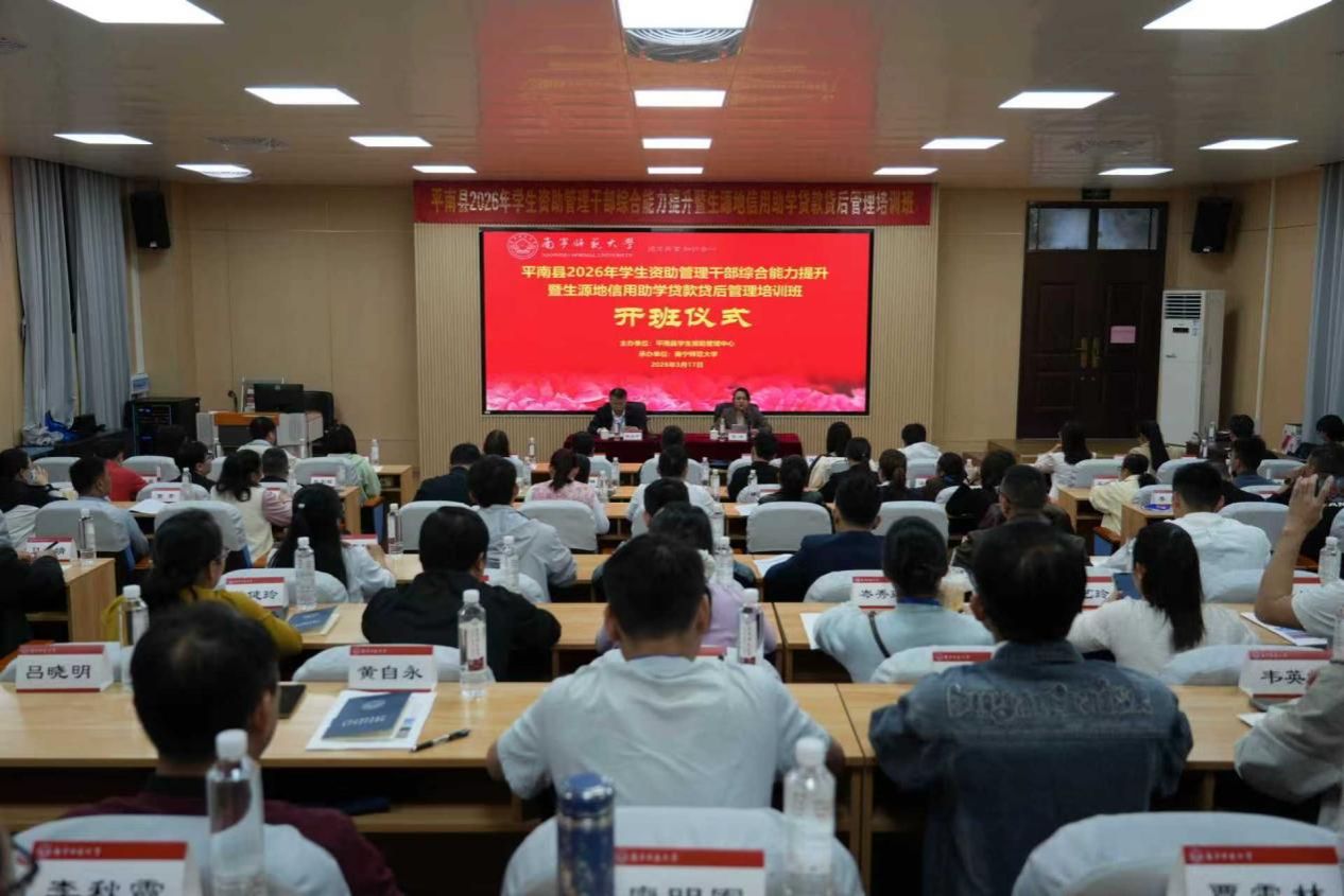 3月17日,由平南县学生资助管理中心主办,我校承办的“平南县2026年学生资助管理干部综合能力提升暨生源地信用助学贷款贷后管理培训班”正式开班,82名学员参加本次培训。