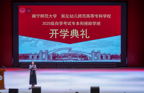 3月25日,我校2025级自考专本衔接班开学典礼在崇左幼专崇德大礼堂隆重举行。典礼以“逐梦自考路,启新向未来”为主题,立足高等教育提质增效、赋能学子成长初心,我校继续教育学院负责人、崇左幼儿师范高等专科学校继续教育学院及各二级学院相关领导、教师代表,崇左幼儿师范高等专科学校报名我校2025级自考专本衔接班学生参加了开学典礼,典礼由崇左幼儿师范高等专科学校继续教育学院覃将副院长主持。