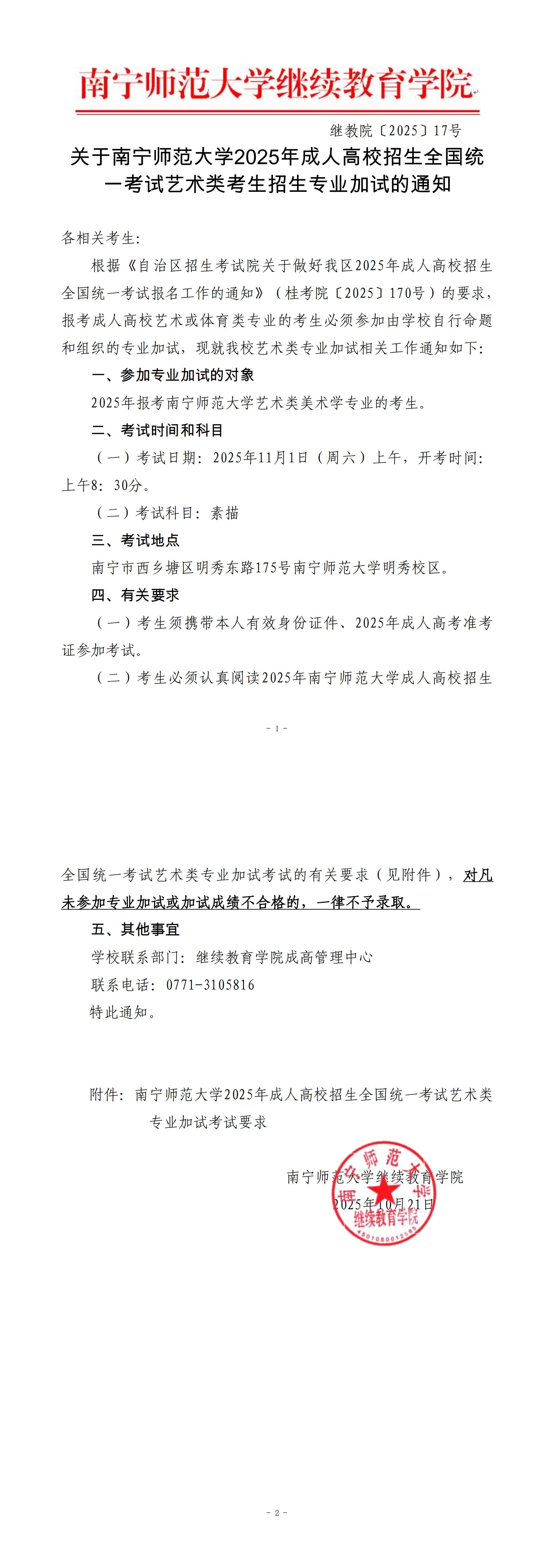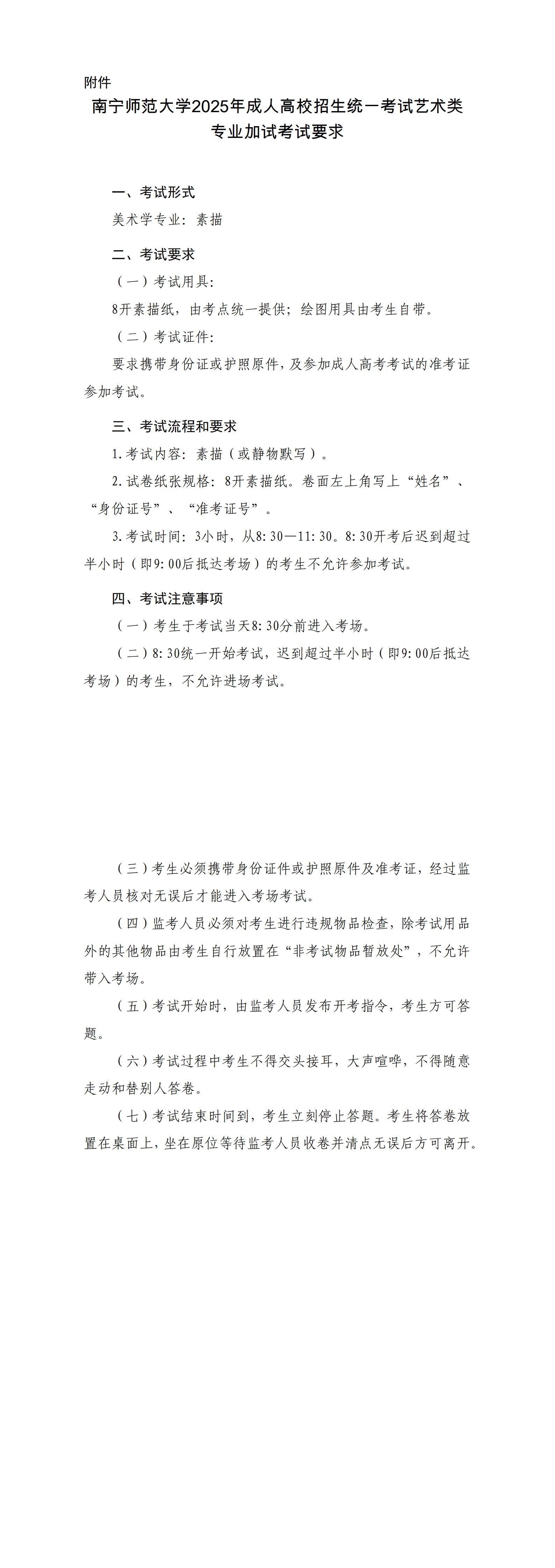 关于南宁师范大学2025年成人高校招生全国统一考试艺术类考生招生专业加试的通知
