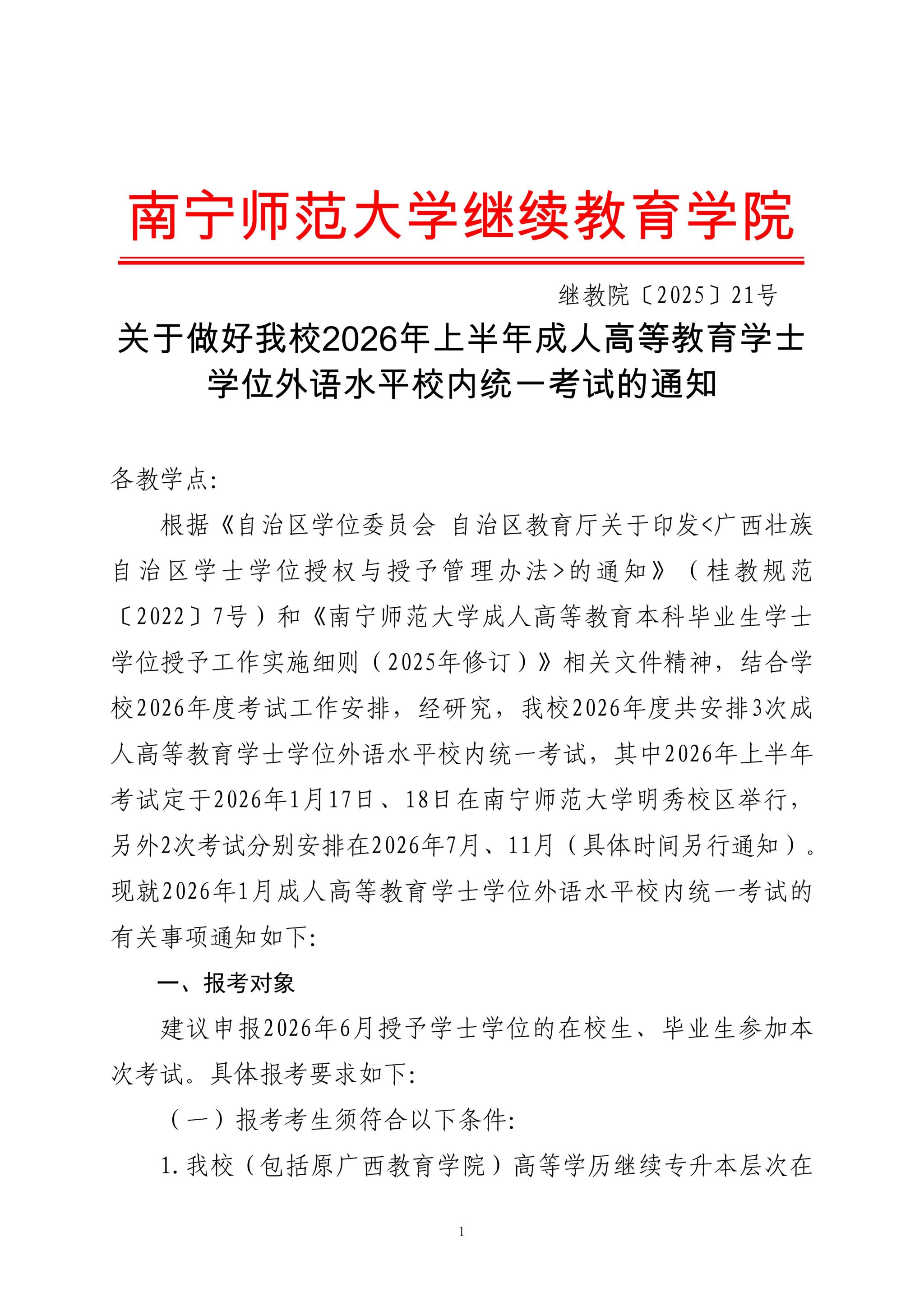 关于做好我校2026年上半年成人高等教育学士学位外语水平校内统一考试的通知
