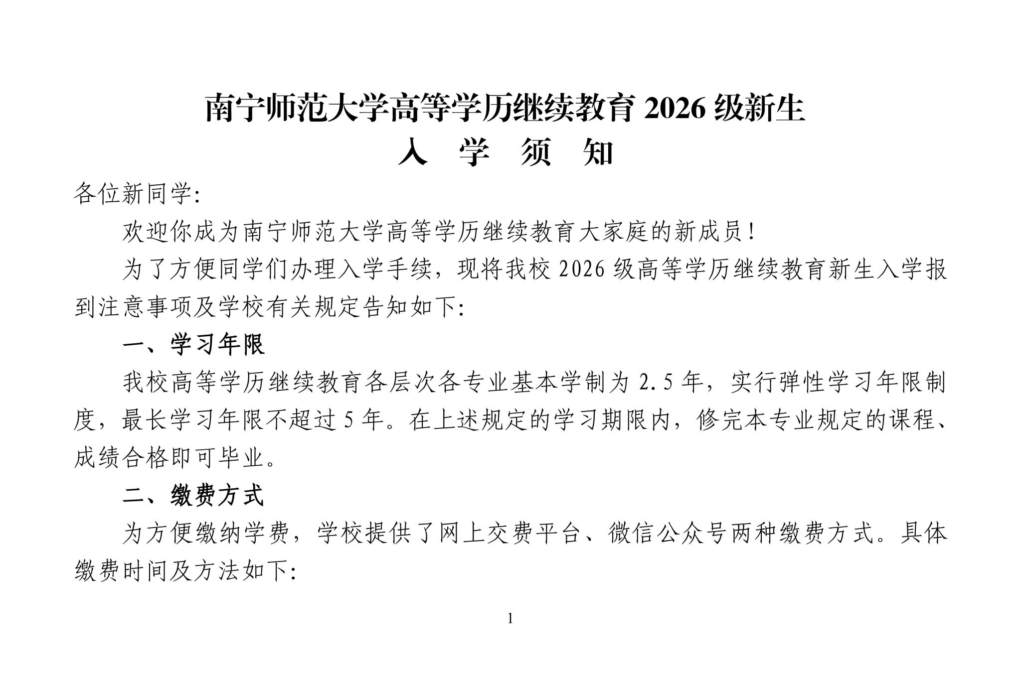 南宁师范大学高等学历继续教育2026级新生入学须知.pdf