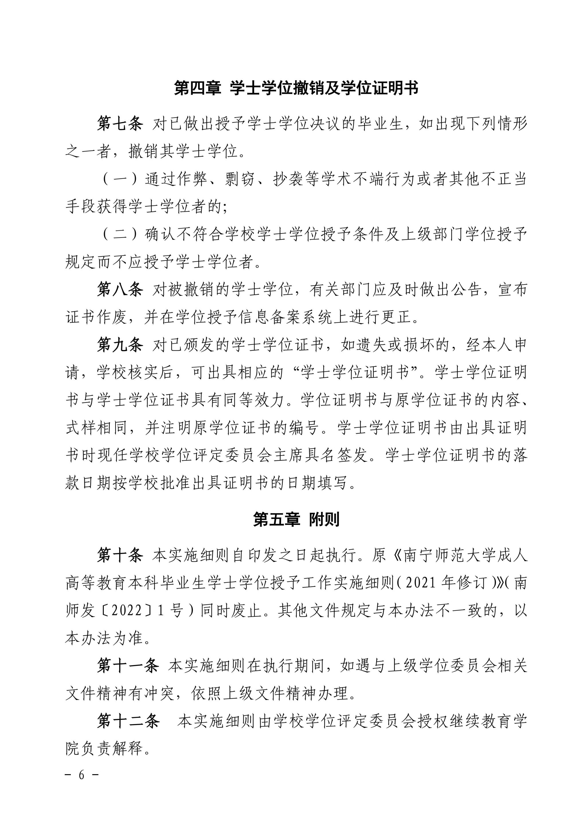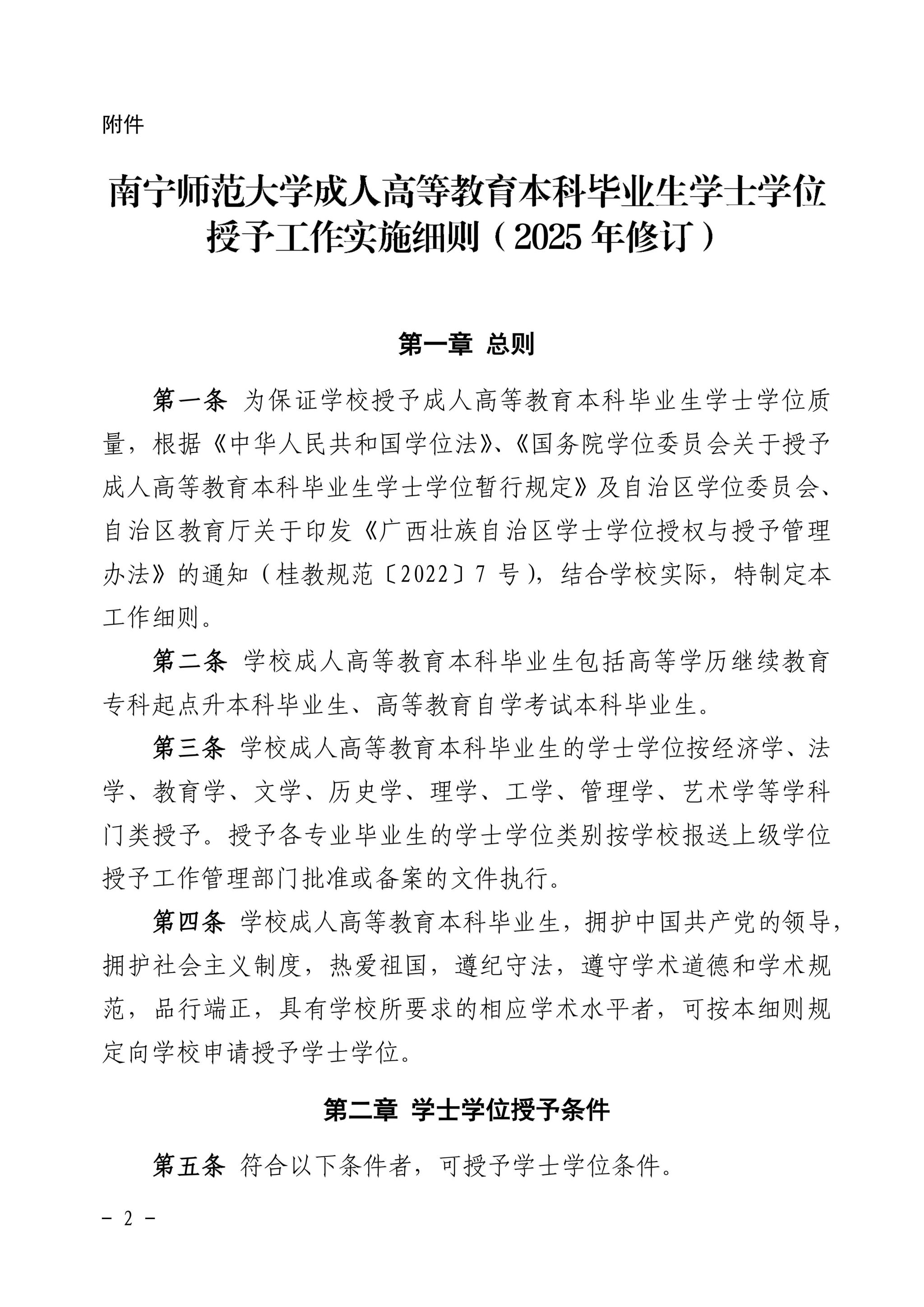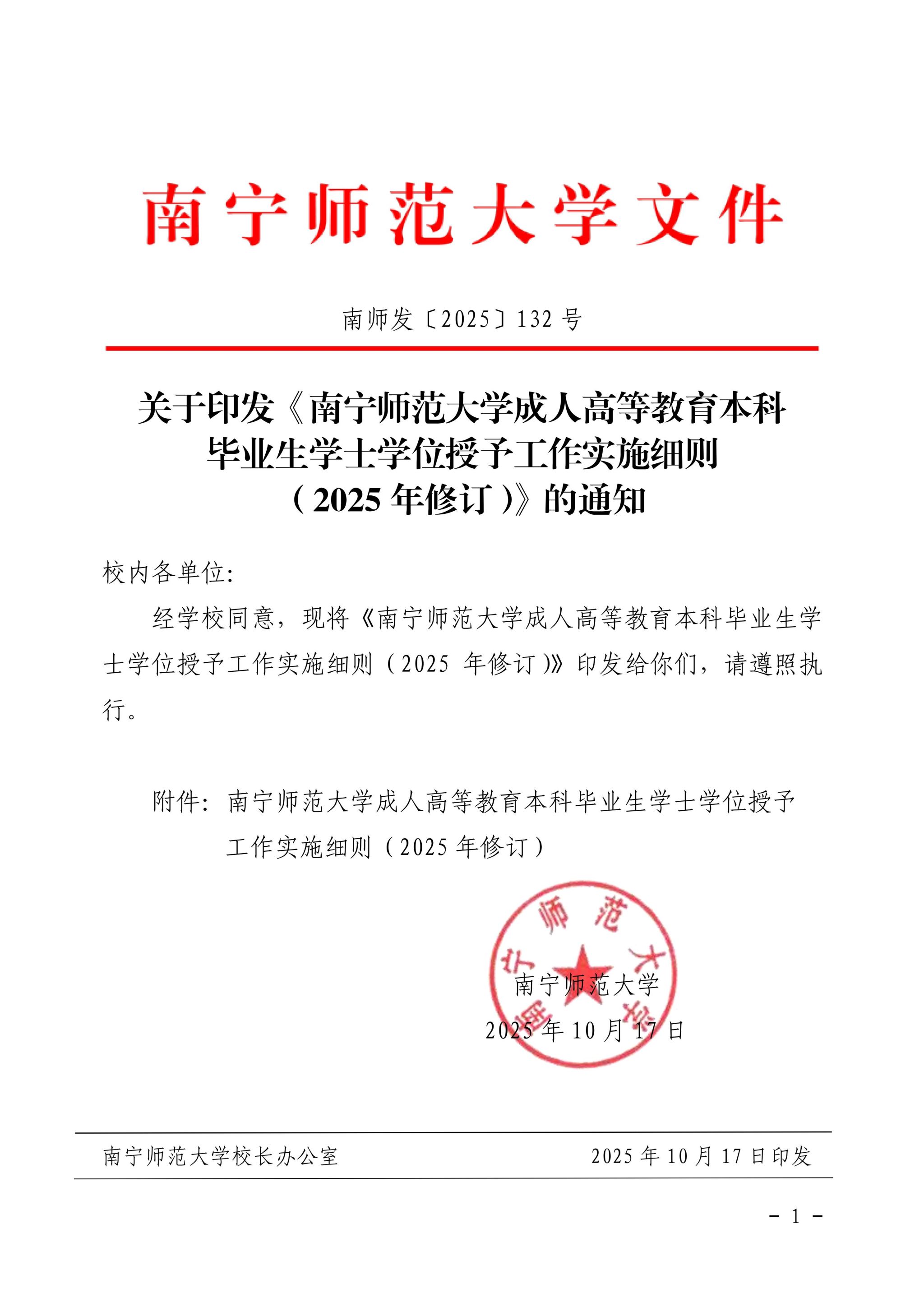 南师发〔2025〕132号关于印发《南宁师范大学成人高等教育本科毕业生学士学位授予工作实施细则(2025年修订)》的通知